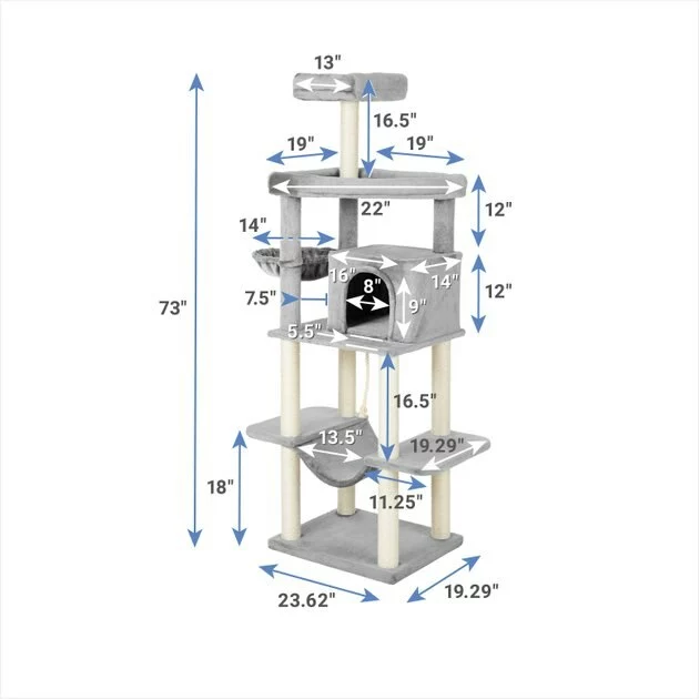 - Plenty of places to take a cat nap, including a hammock, condo, basket, and top perch.