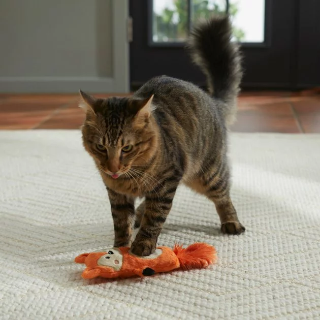 Ah, the smell of pine, the stars, and nothing but you, your kitty and the great outdoors. Oh, and this fox kicker toy filled with catnip. Whether you’re prowling around the campsite or glamping on the couch, this tent-side must-have is ready to bust boredom wherever the playtime fun takes you. Perfectly shaped for kicking, it’s the playtime critter your kitty has been waiting for!