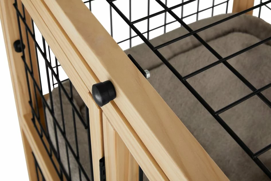 Give your feline friends a home within your home with this collapsible playpen made just for kitties. This playtime retreat features two levels for cats to play and lounge on, so it’s great for a single cat or a playdate pal, too. Made with sturdy and durable wood construction and steel wire, it provides hours of supervised fun and looks great with any home décor. Getting your pals in and out is effortless with two side doors and a removable top door. Keeping it clean is also effortless thanks to the removable pan. When not in use, it collapses for easy storage.