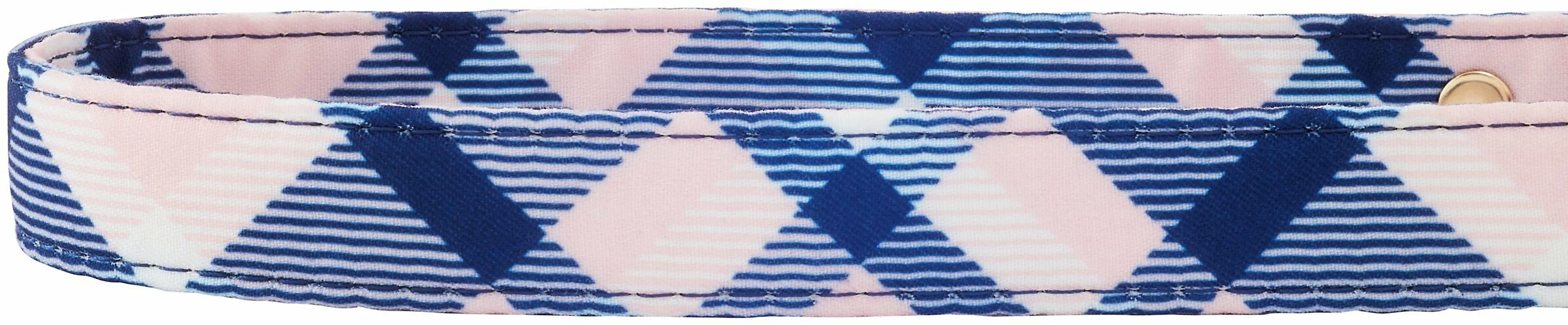 - Pink plaid printed on twill and gold hardware add a stylish touch to daily walks.