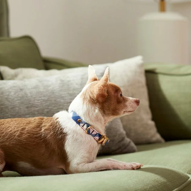 Upgrade your pup’s daily walks with a collar that combines function with a fashion-forward print. Made with nylon webbing and curved buckle for comfort, it’s the go-to collar for all your walks, jaunts and strolls. Available in various sizes to suit most dog breeds. Plus, most sizes have a handy D-ring to attach an ID tag without cluttering the leash ring.