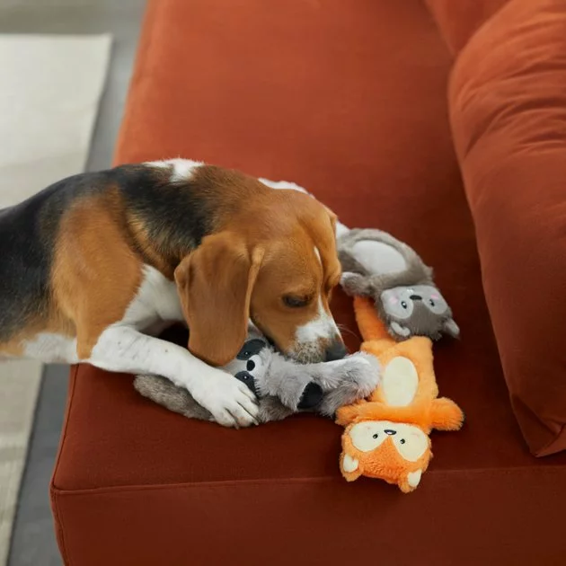 - Each toy has three pup-preferred squeakers, and crinkle paper inside its bushy tail.
