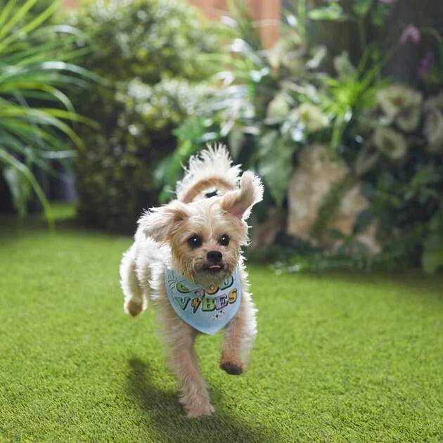 - Bandana features a snazzy tie-dye base that reads “Good Vibes Only” for the chillest of pets.