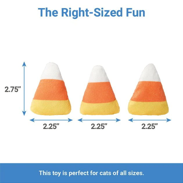 Indulge your cat’s sweet tooth without the cavities with the Frisco Halloween Candy Corn Plush Cat Toy with Catnip, 3 count. This cute candy corn trio features catnip and crinkle paper in each toy to help stimulate the spirit of playtime.