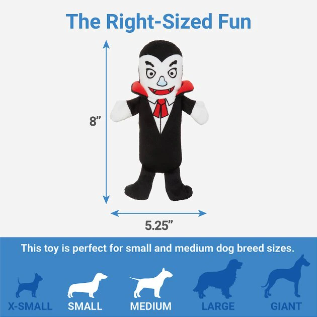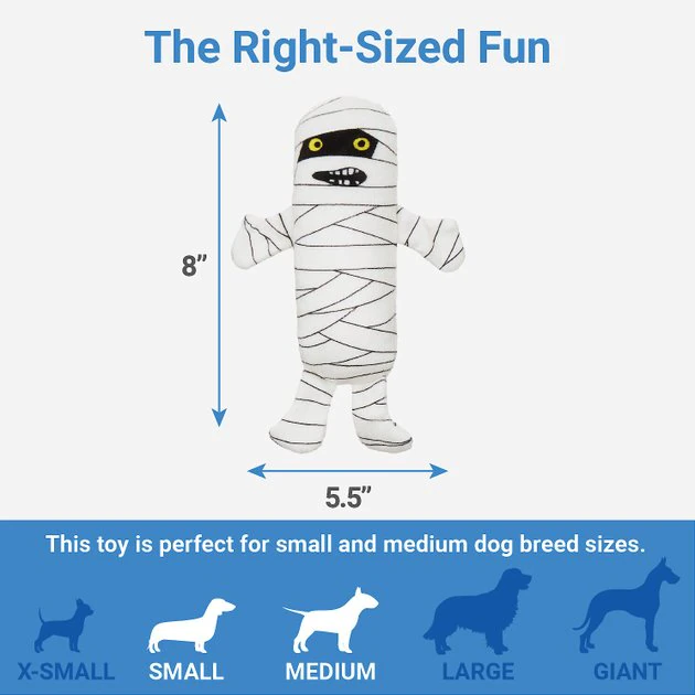 Don’t let their creepy looks fool you, this ghoulish gang is just a bunch of softies—and they’re here to play. They’re filled with soft plush and have a built-in squeaker for the loud fun dogs love. Toss them, squeak them or hide them to get playtime started with your pup. The set of three come together for triple the excitement!