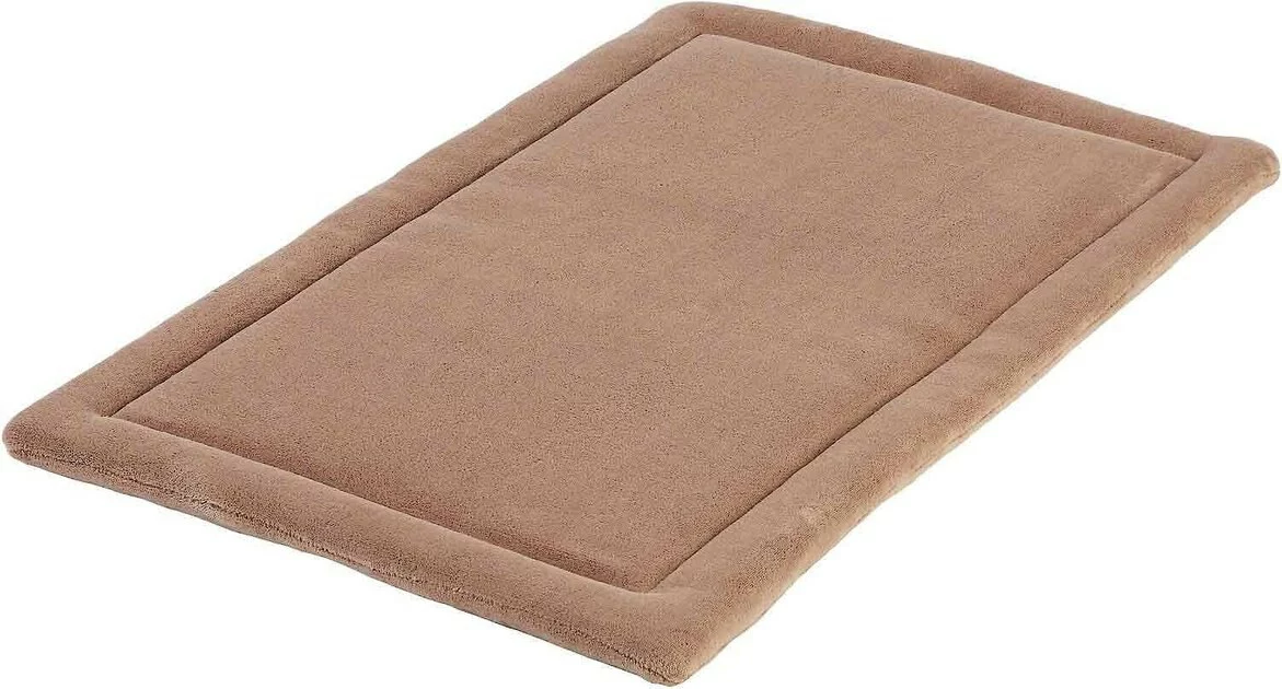 Remember to measure your pet for the paw-fect fit. Each purchase comes with the Frisco Heavy Duty Fold & Carry Double Door Collapsible Wire Dog Crate and the Taupe Frisco Micro Terry Dog Crate Mat. Paw-fect for training or keeping him safely contained while you’re away, this crate is larger with thicker and heavier wiring than standard Frisco crates for added security. Each panel is constructed with rounded corners for your pet’s safety. The two large doors—one at the front and one on the side—give you more placement options in the home, and they make exit and entry a breeze in the car. The mat is a cozy addition to your furry buddy’s new crate. It’s made with a cushioned, poly-cotton base for a layer of comfort, and the micro-terry top keeps him cool in the summer and toasty in the winter.