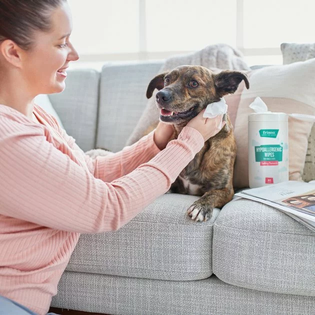 Keep your fur friend squeaky clean in between baths with the Frisco Hypoallergenic Wipes. Specially formulated for sensitive pups and kitties, these wipes gently remove dirt and odor without needing any water. This 98% natural formula is unscented and free of allergens, plus it contains a soothing botanical extract blend and skin conditioning glycerin to help keep your pet feeling fresh.