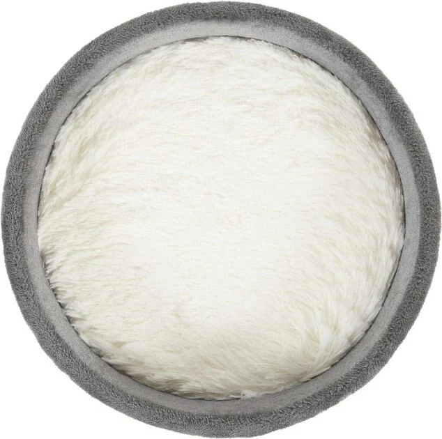 - Chic, modern round bed is elevated on wooden legs, so your kitty can cat nap in style.