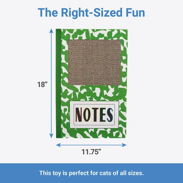 Your kitty is so prepared for class with this classic composition notebook scratcher. The front cover has a scratching pad made of corrugated cardboard for your cat to dig their claws right in, and what’s that? An even bigger scratching area when you open the notebook! Talk about too cool for school. If your feline’s favorite subjects are scratching and stretching, this is the back-to-school essential they need. For kitties that are into the feline feel-good herb, there’s a packet of catnip to level up the scratching satisfaction.