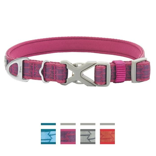 Frisco Outdoor Comfort Print Nylon Padded Collar, Large, Neck: 18 -26-in, Width: 1-in + Outdoor Ultra Reflective Rope Leash With Padded Handle, Boysenberry Purple, 6 – ft