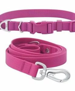 Outdoorsy dog parents know the tell-tale smell of a stinky collar and leash! Leave that funk behind with the Frisco Outdoor Solid Textured Waterproof Stink Proof PVC Collar, Boysenberry Purple, Small – Neck: 10½14-in, Width: 5/8-in + Dog Leash, Boysenberry Purple, Small – Length: 6-ft, Width: 5/8-in bundle! Both the collar and leash are made with durable polyester webbing and finished with matte PVC coating that resists water and odor-causing bacteria, so they are perfect for dogs who love water and tend to get a little dirty while enjoying their outside time. The collar features a D-ring for secure leash attachment and a separate tag ring too, while the leash features a secure lobster clasp and a D-ring so you can attach waste bags!
