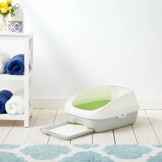 How to Use: Place one cat litter pad (soft side up) in the litter box system and slide into the base.