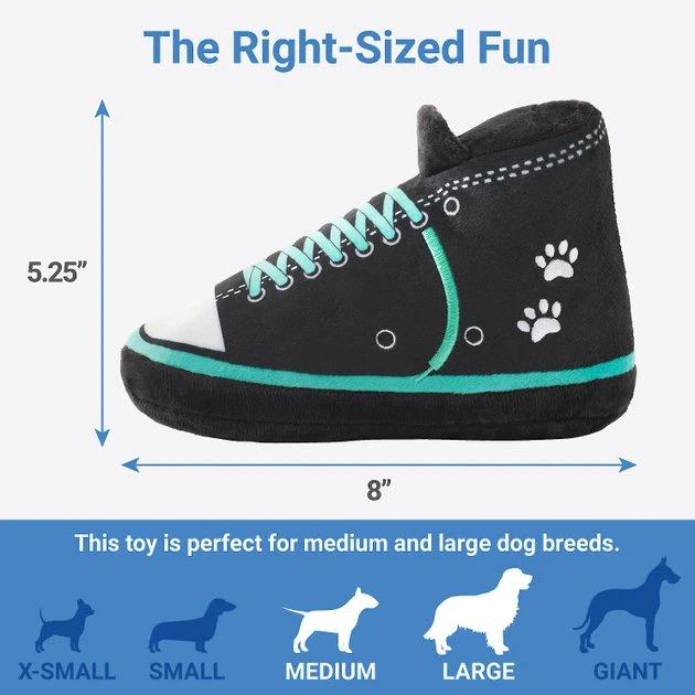 - Set of two plush sneaker toys are ready to kick up playtime.