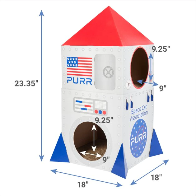 - Two large openings so your kitty can hop in and out as they please—and keep their eye on the mission from inside their spaceship.
