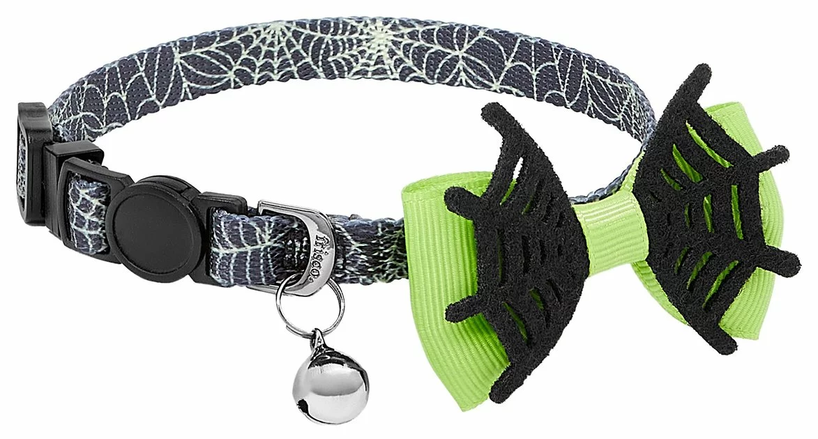 - Style your cat for Halloween with a green and black spiderweb collar to bring on the spirit of the season.
