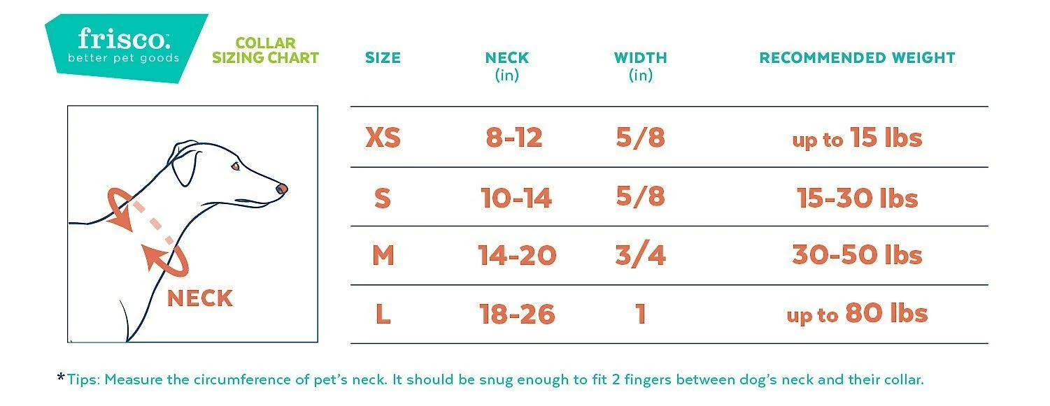 This Frisco collar is manufactured in the USA from foreign and domestic parts.
