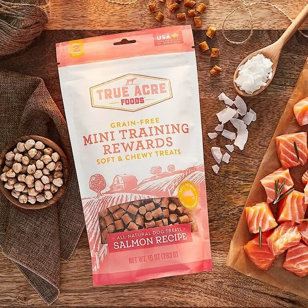 Frisco||True Acre Foods Frisco Fetch Squeaking Colorful Tennis Ball Dog Toy & True Acre Foods Salmon Recipe Mini-Training Rewards Grain-Free Soft & Chewy Dog Treats