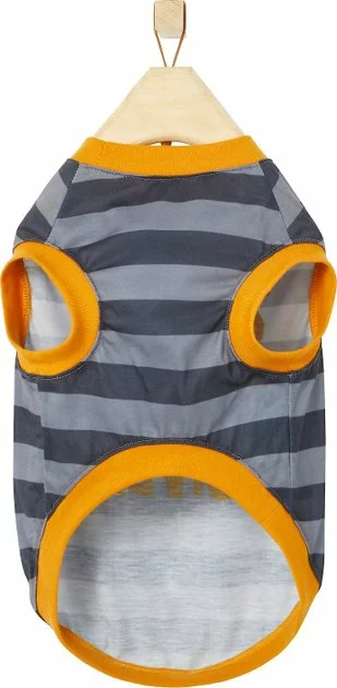 Remember to measure your pet for the paw-fect fit. Let your pet put their paws in the air like they just don’t care with the Frisco Zero Barks Given Dog & Cat T-Shirt. This lightweight t-shirt is made with a breathable cotton-polyester blend and features an adorable “Zero Barks Given” print. The pull-over style makes it easy to get your pet dressed—so they can be the center of attention! Plus, it’s machine washable and comes in different sizes to fit most pups and kitties.