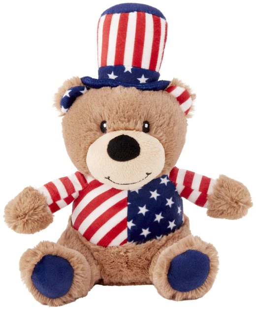 Toss, squeak, repeat—make playtime extra soft and noisy. It’s all about the bear necessities with this plush critter, like a built-in squeaker to turn up the excitement and ultra-soft plush fabric for cuddly softness. This bear is dressed to celebrate the 4th of July or any paw-triotic themed party. The touchable texture makes it a great nap buddy too.